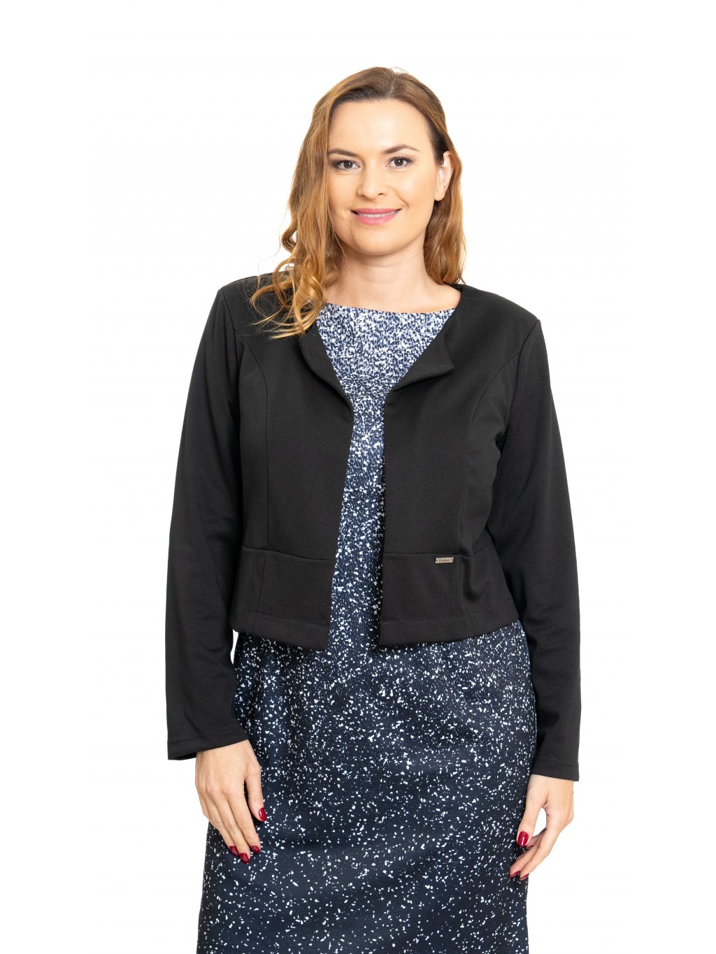 Bolerko je vyrobené zo zmesového úpletu. Ideálny doplnok k šatám, dĺžka pod pás, silueta tvarovaná švami, bez zapínania.
