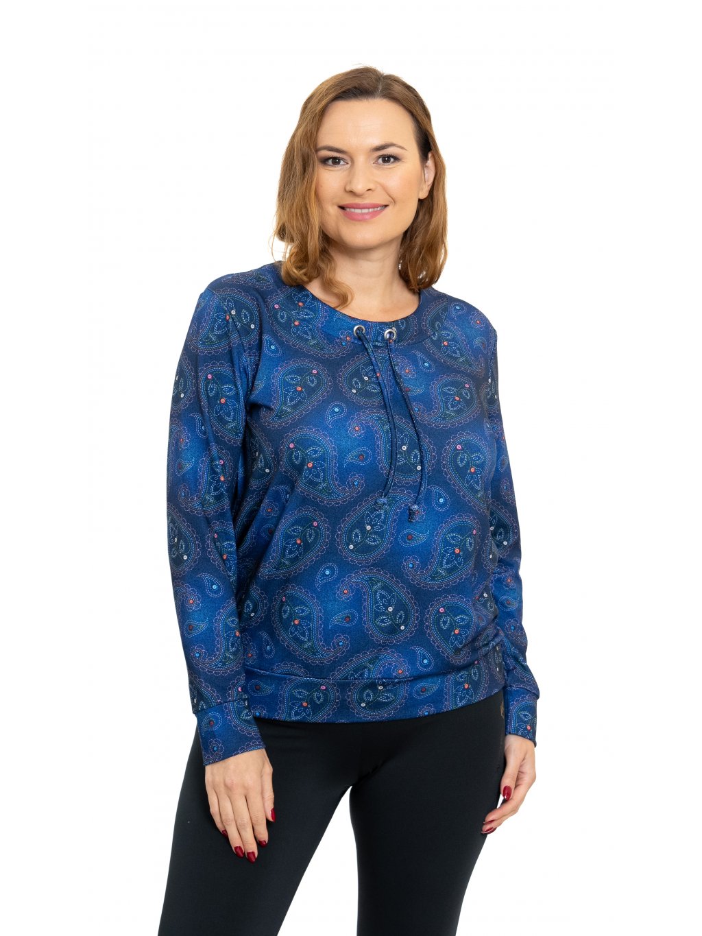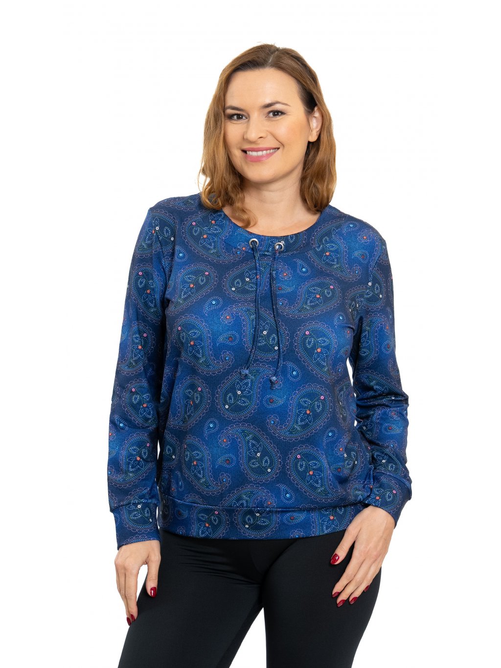 Mikina je vyrobená z príjemného slučkového úpletu s elastanom a digitálnou tlačou.