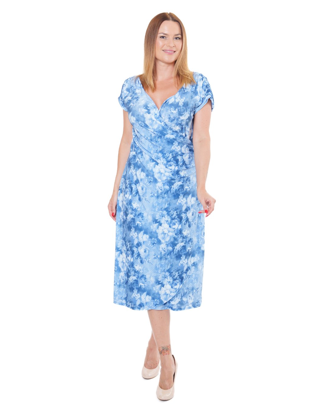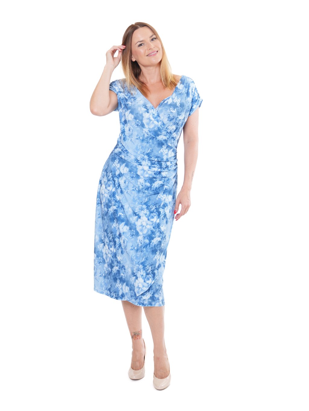 Letné šaty princeznovského strihu s rozšírenou sukňou z jemného splývavého viskózového úpletu s elastanom. Tento strih bez prešitia v páse zvýrazní ženské krivky a pristane aj postavám so širšími bokmi.
