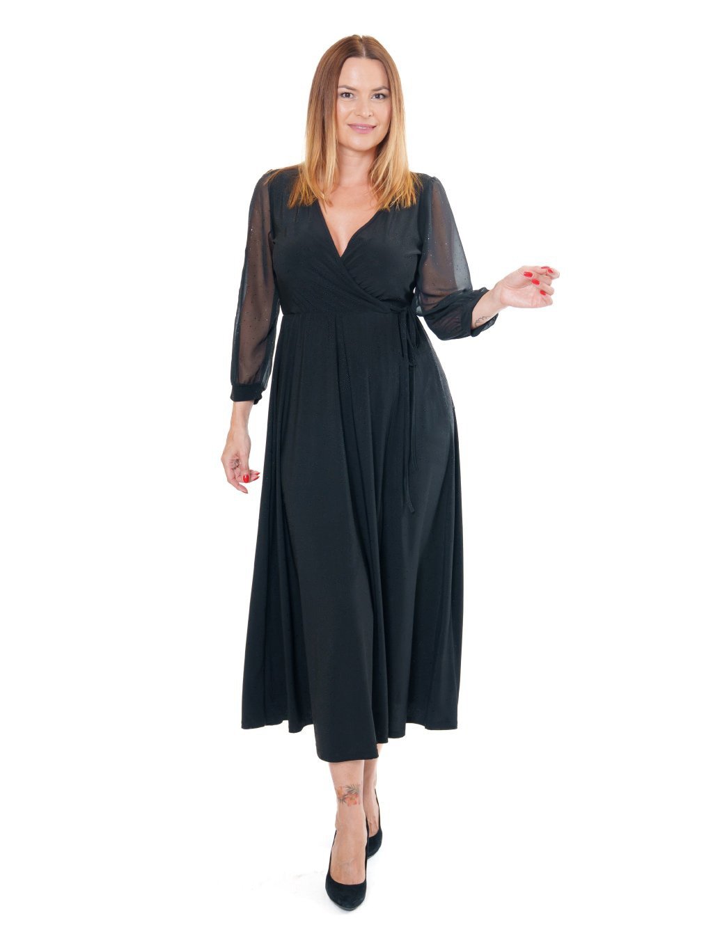 Letné šaty princeznovského strihu s rozšírenou sukňou z jemného splývavého viskózového úpletu s elastanom. Tento strih bez prešitia v páse zvýrazní ženské krivky a pristane aj postavám so širšími bokmi.