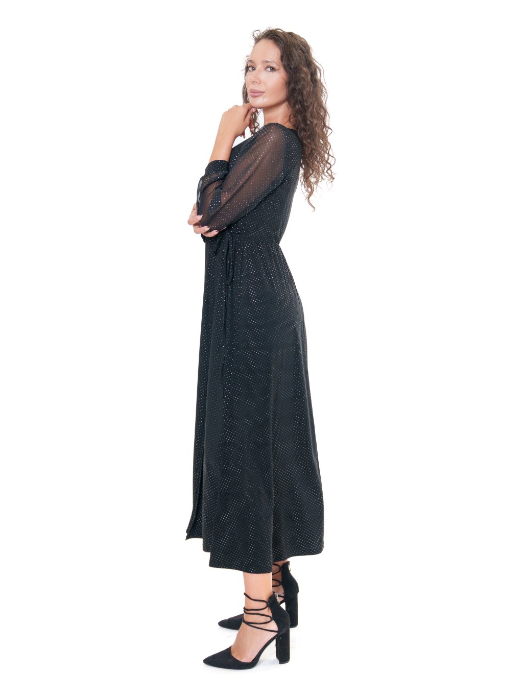 Letné šaty princeznovského strihu s rozšírenou sukňou z jemného splývavého viskózového úpletu s elastanom. Tento strih bez prešitia v páse zvýrazní ženské krivky a pristane aj postavám so širšími bokmi.