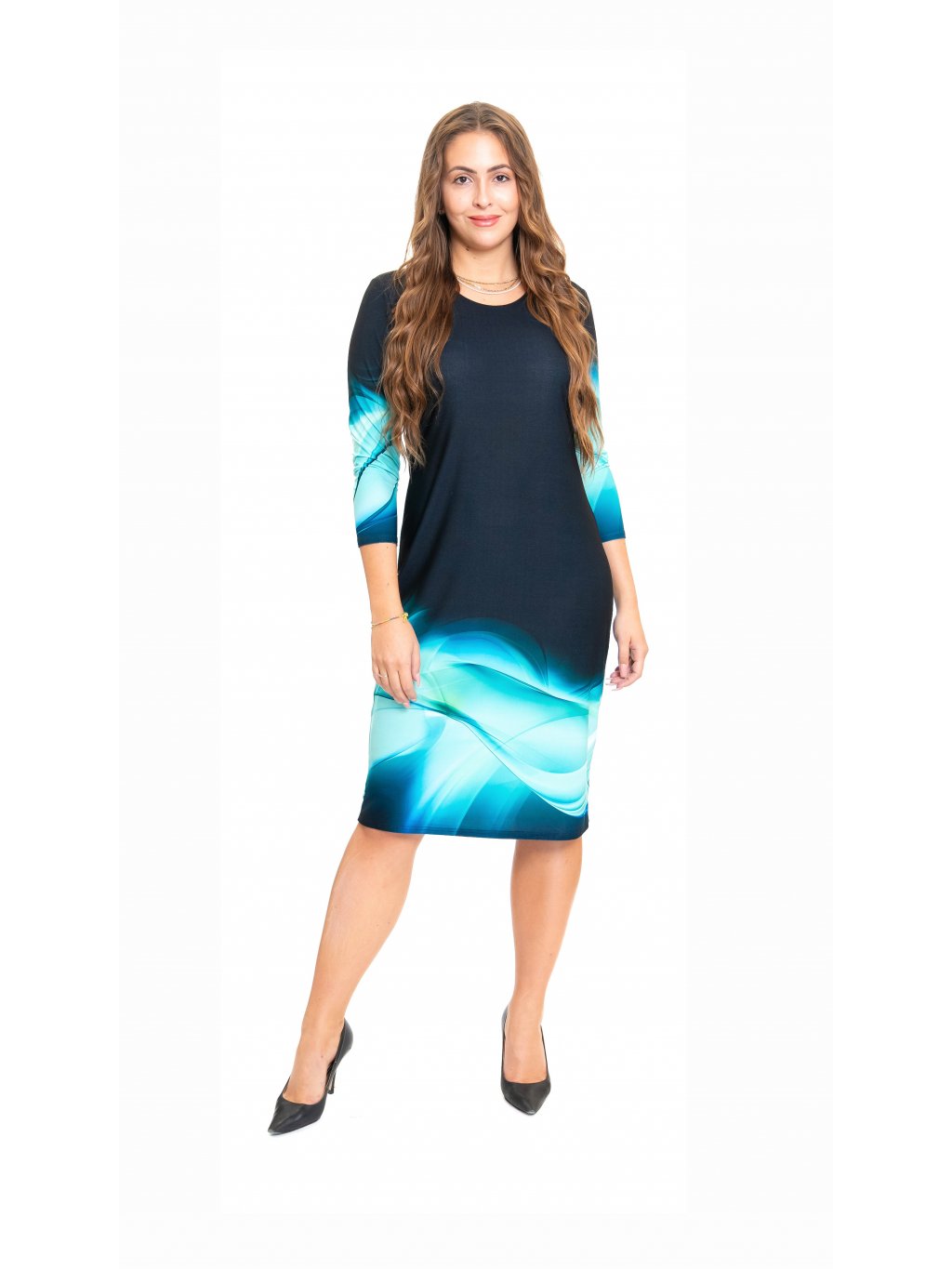 - Šaty sú vyrobené z jemného, splývavého úpletu PES/elastan, ktorého vrchná strana je ľahko zabrúsená a na dotyk je hebká až zamatová, spodná strana je naopak chladivá