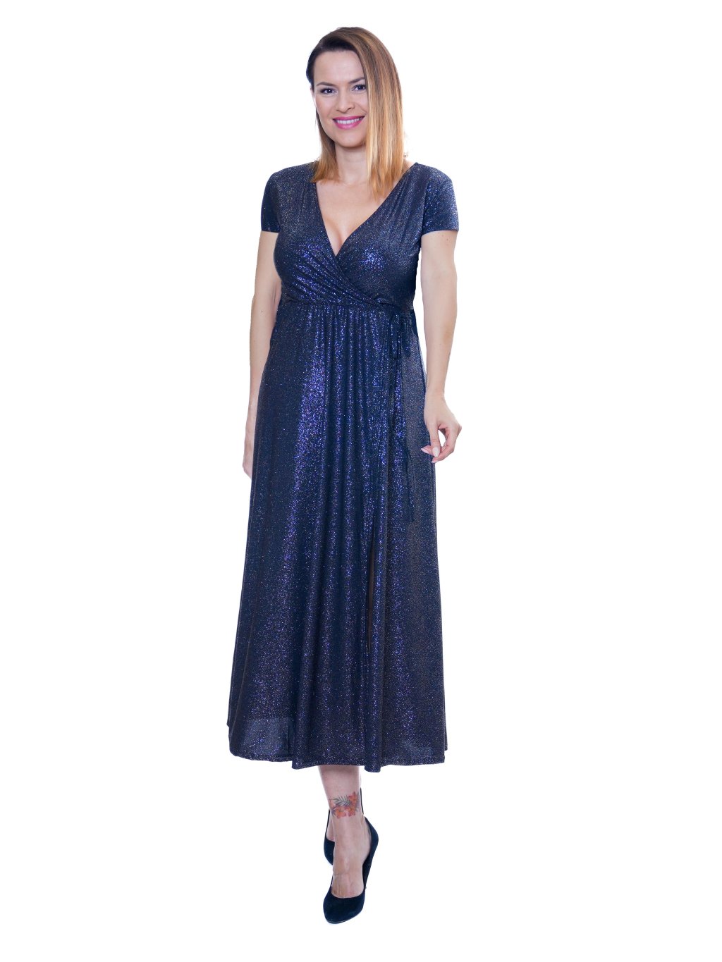 - Spoločenské šaty obľúbeného strihu z ľahkého splývavého úpletu s trblietkami jemných flitrov.