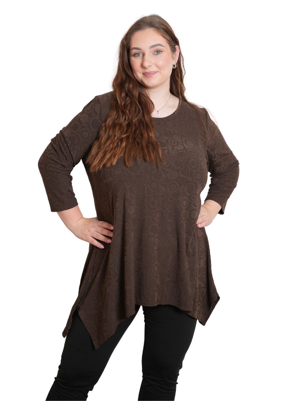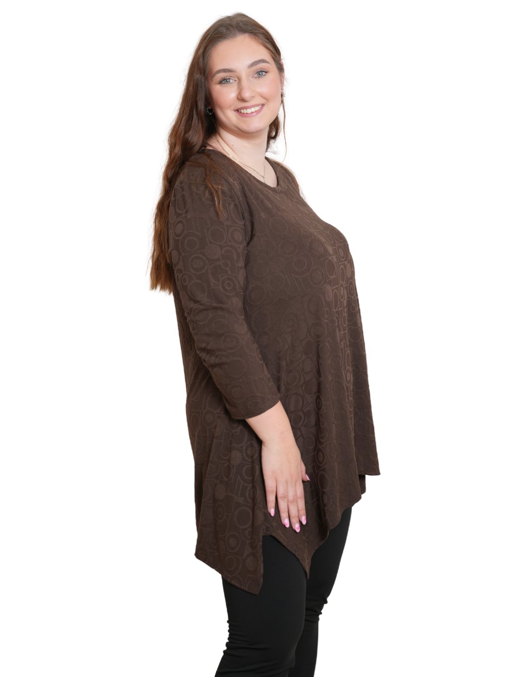 Tunika je vyrobená z viskózového úpletu s prímesou elastanu. Veľmi dobre padnúci strih postavám so širšími bokmi. Elegantná čierna farba so zaujímavým farebným motívom v digitálnej tlači.