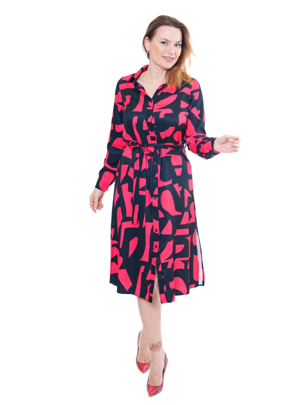 SLEVA VADA Sofistik košilové šaty DANIELKA, červená abstrakt