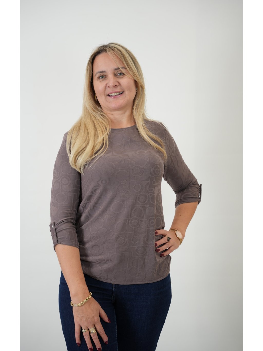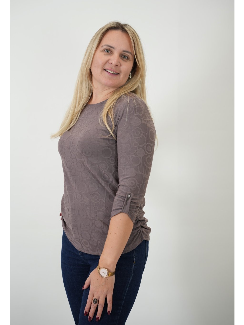 Halenka je vyrobená z jemného příjemného úpletu s příměsí elastanu. Elegantní jemné žakárové vzorování lesk/mat. Rovný střih na bocích mírně zřasený, délku rukávu lze zkrátit přepnutím na knoflík.