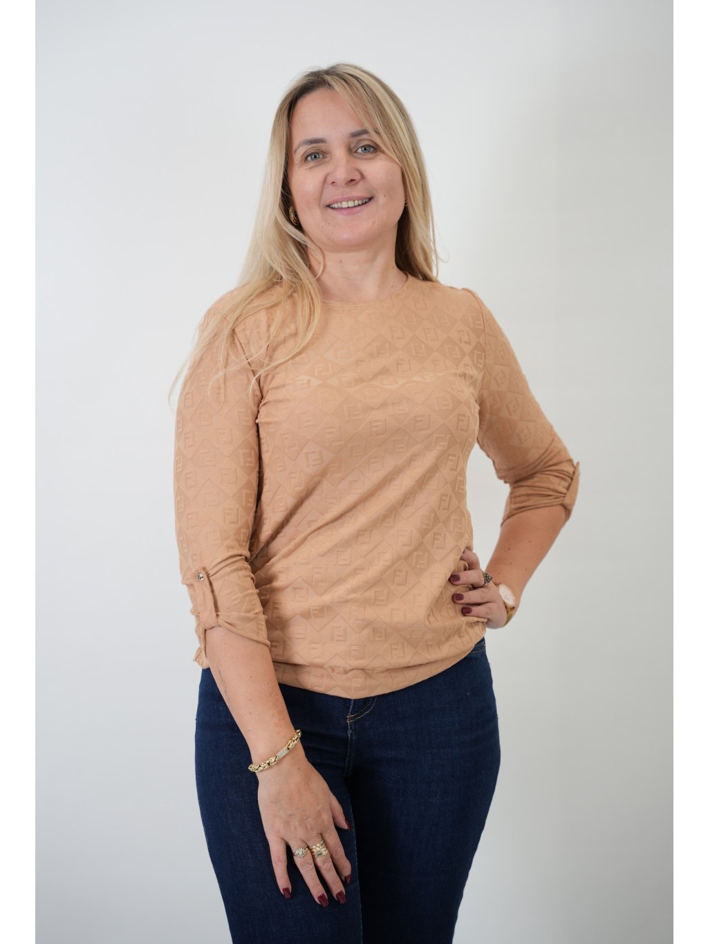Halenka je vyrobená z jemného příjemného úpletu s příměsí elastanu. Elegantní jemné žakárové vzorování lesk/mat. Rovný střih na bocích mírně zřasený, délku rukávu lze zkrátit přepnutím na knoflík.