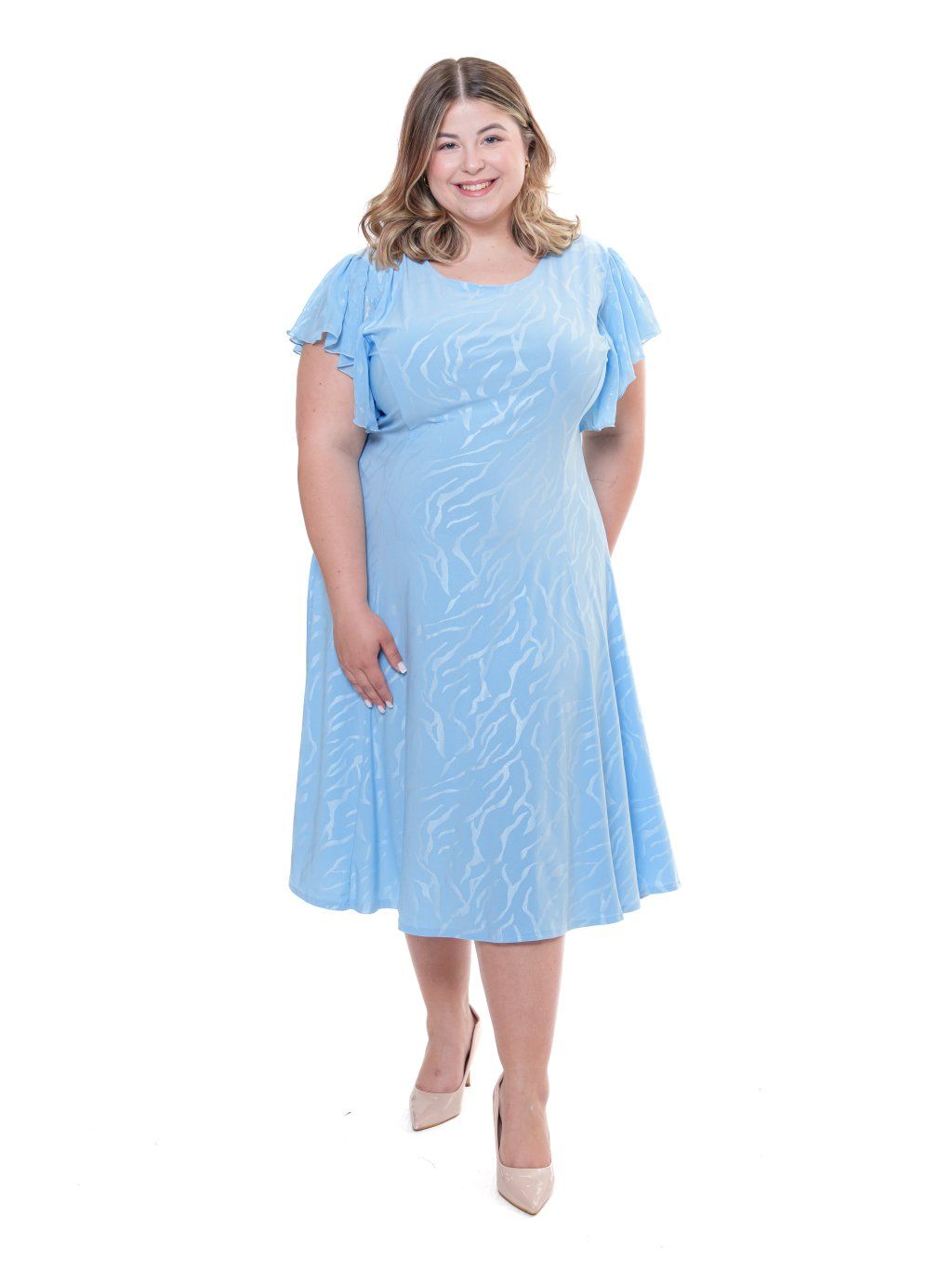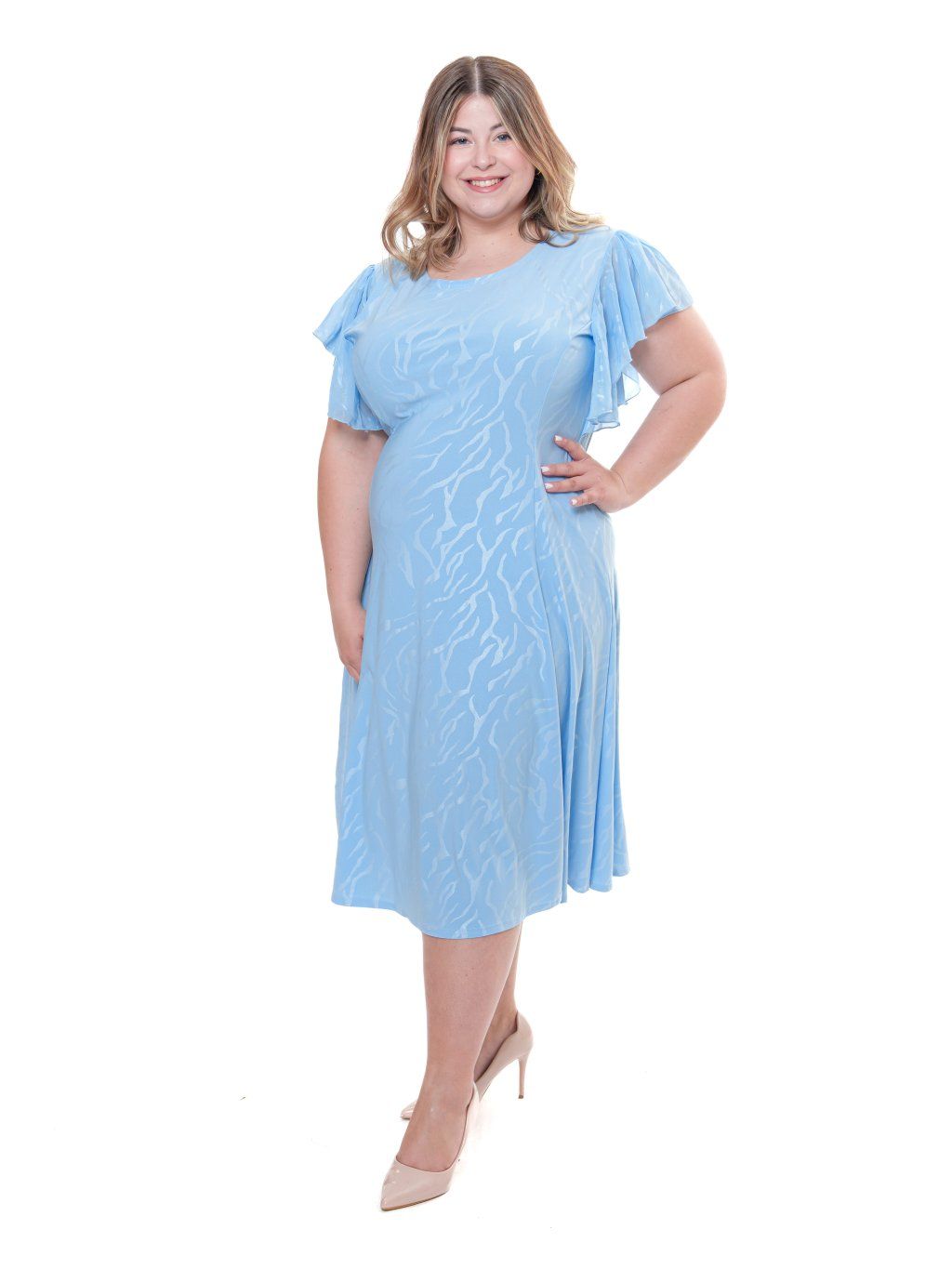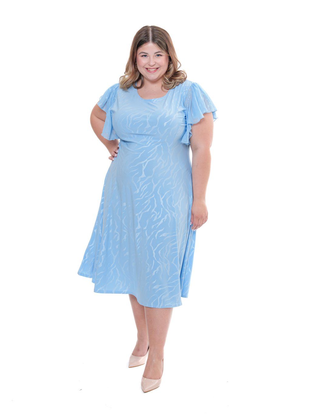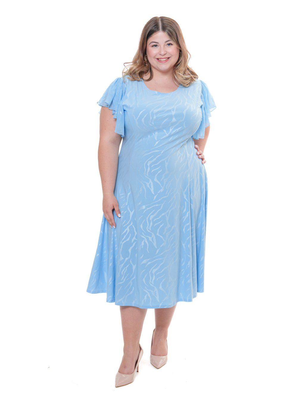 - Společenské šaty princesového střihu z lehkého splývavého úpletu s jemným třpytem a motýlími šifonovými rukávy.