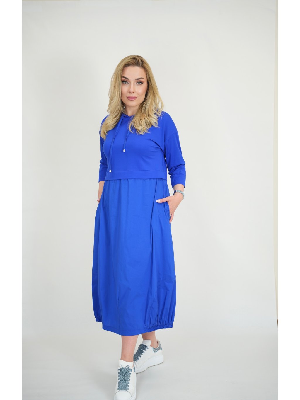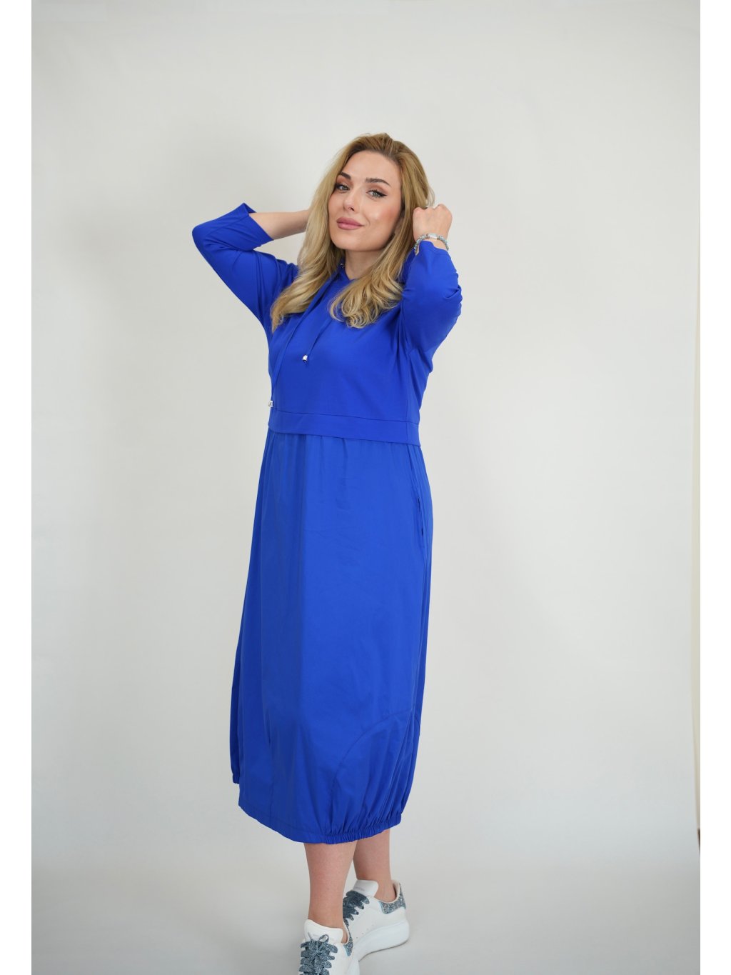 Nový skvěle padnoucí ležérní střih šatů - pohodlný, neformální, uvolněný. Vrchní díl je z elastického úpletu, sukně balonového typu z jemného plátna.