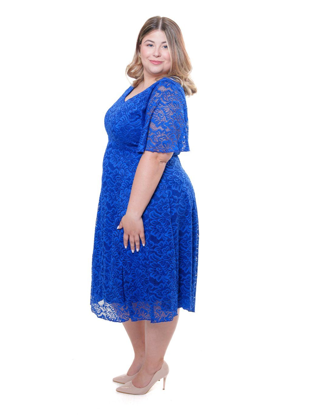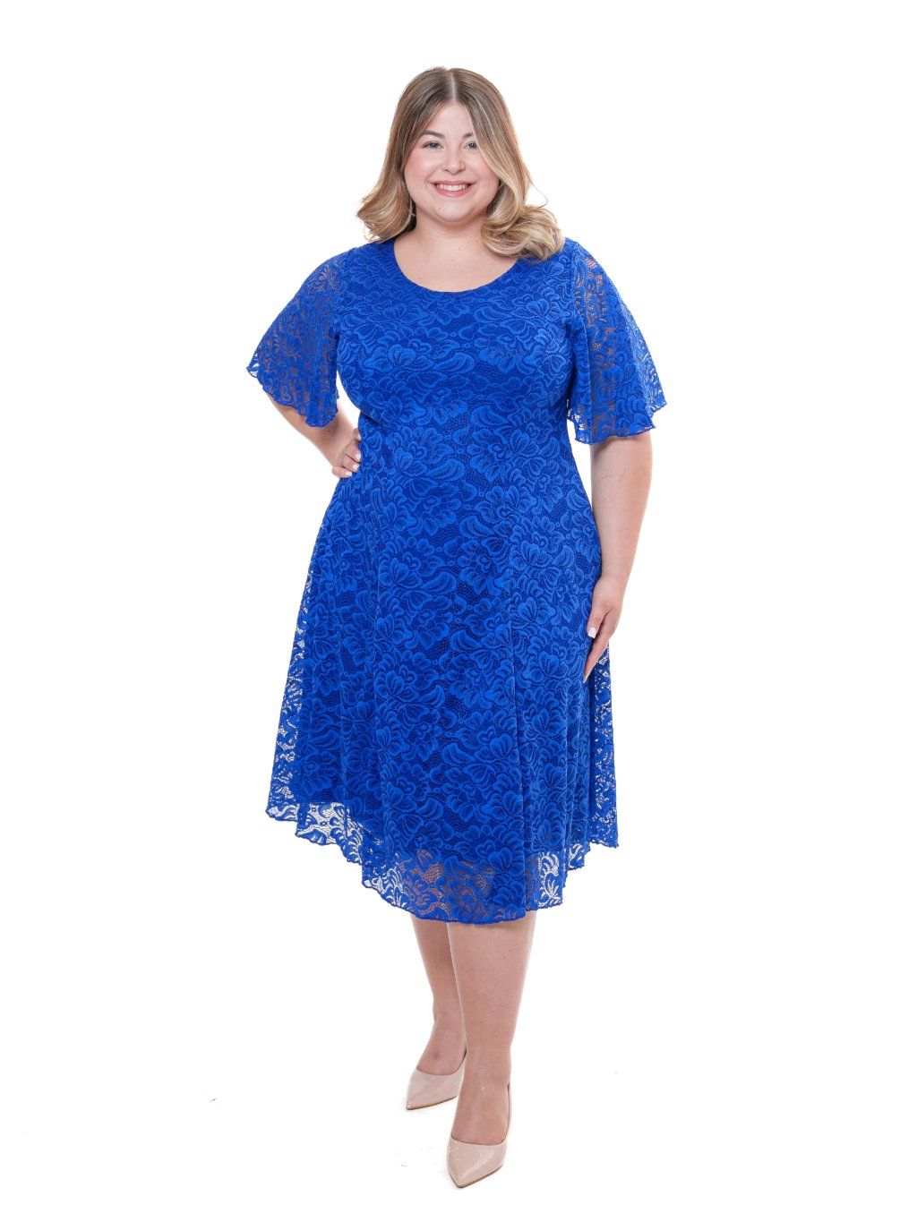 Společenské šaty princesového střihu z jemné krajky podšité lehkým splývavým úpletem. Šaty mají motýlkový rukáv a rozšířenou, krásně točivou sukni.