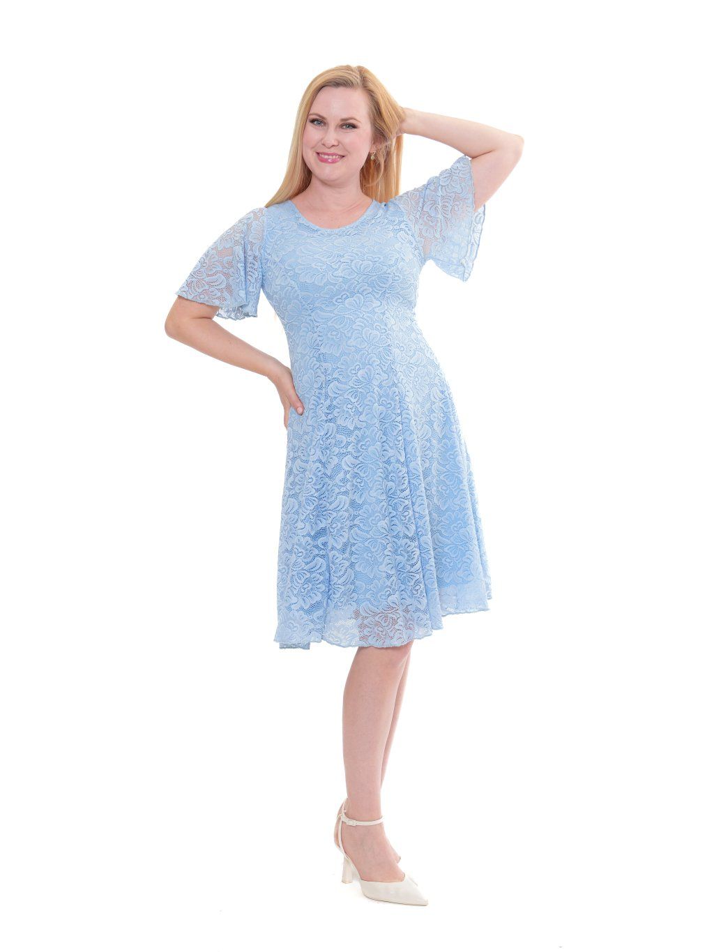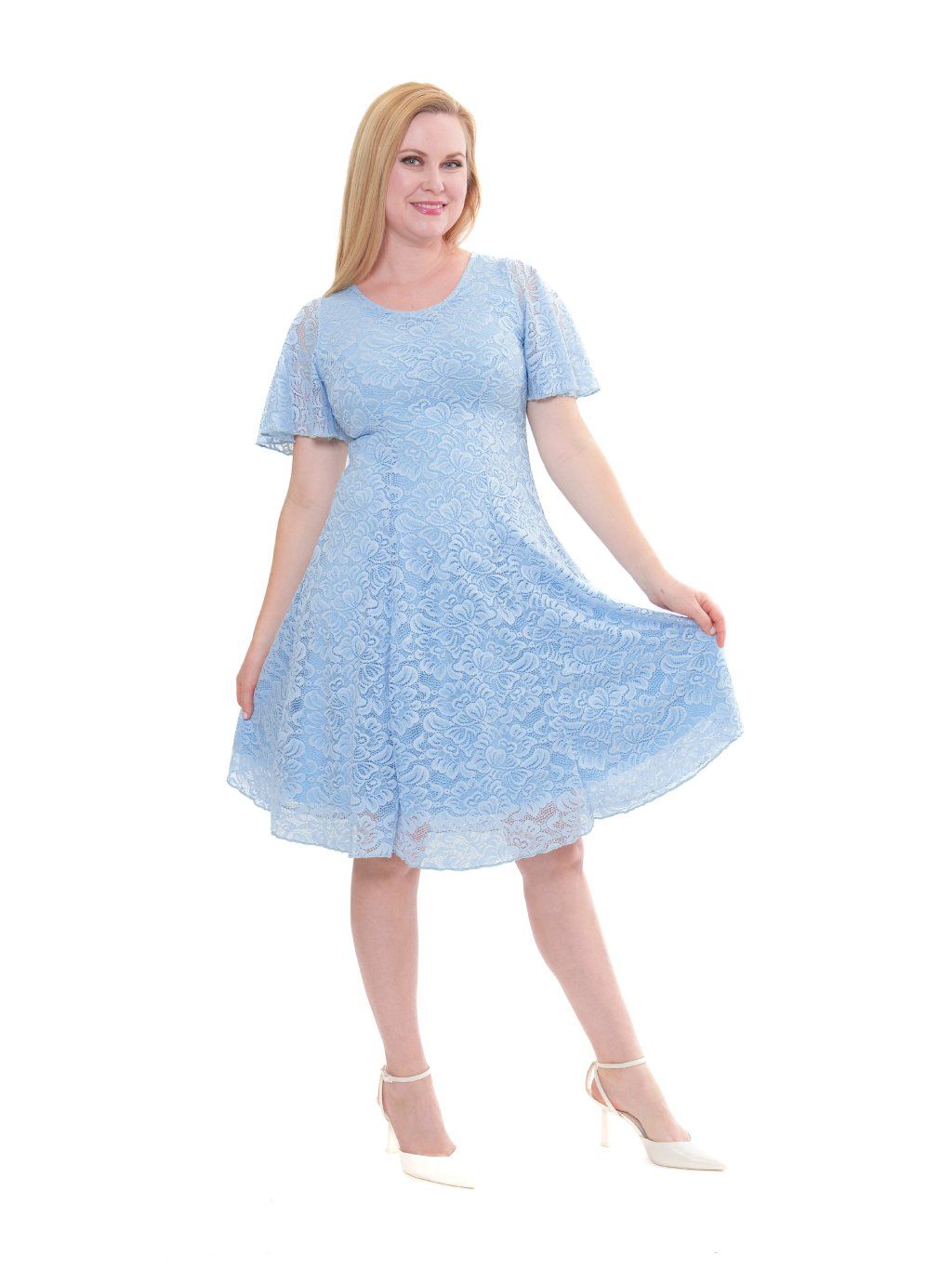 Společenské šaty princesového střihu z jemné krajky podšité lehkým splývavým úpletem. Šaty mají motýlkový rukáv a rozšířenou, krásně točivou sukni.