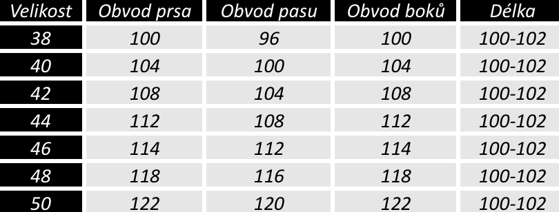 Velikostní tabulka JITKA *UVEDENÉ ROZMĚRY JSOU ROZMĚRY VÝROBKU V NENATAŽENÉM STAVU-JEDNÁ SE O TKANINU S MINIMÁLNÍ PRUŽNOSTNÍ (MAX +-1CM)