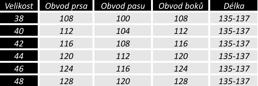 Velikostní tabulka JOHANA UVEDENÉ ROZMĚRY VÝROBKU JSOU V NENATAŽENÉ STAVU, JEDNÁ SE O TKANINU S MINIMÁLNÍ PRUŽNOSTÍ (MAX +-1CM)