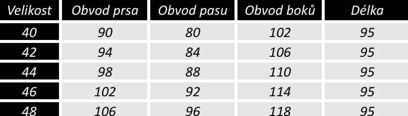 Velikostní tabulka ŠÁRKA